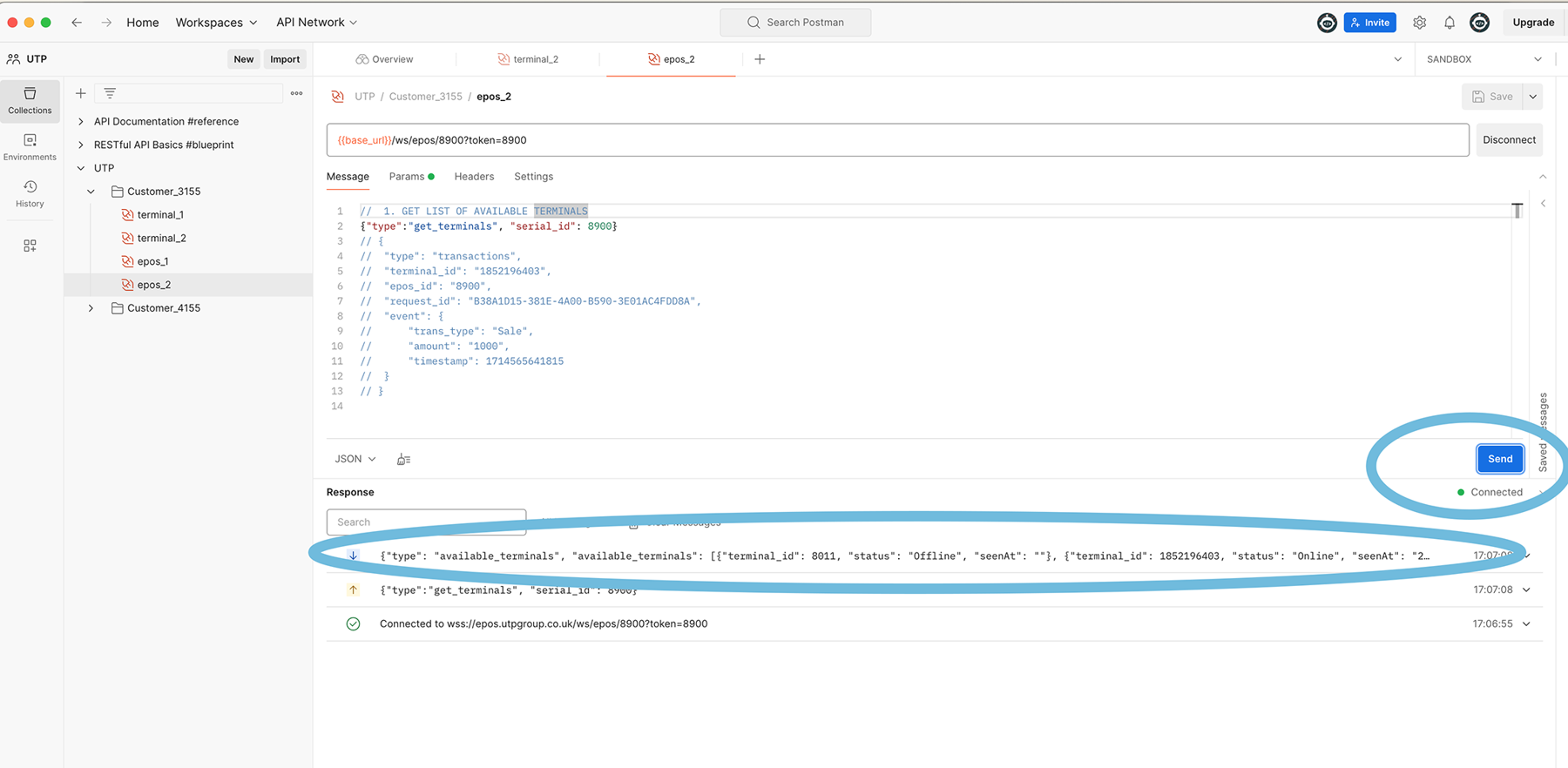 Feel free to test the API by sending an order from the EPOS to the terminal using the provided JSON.